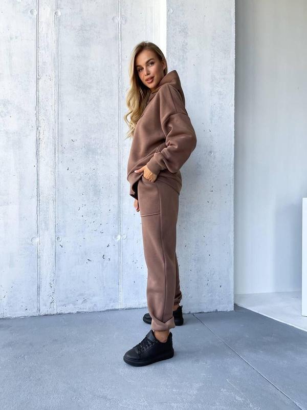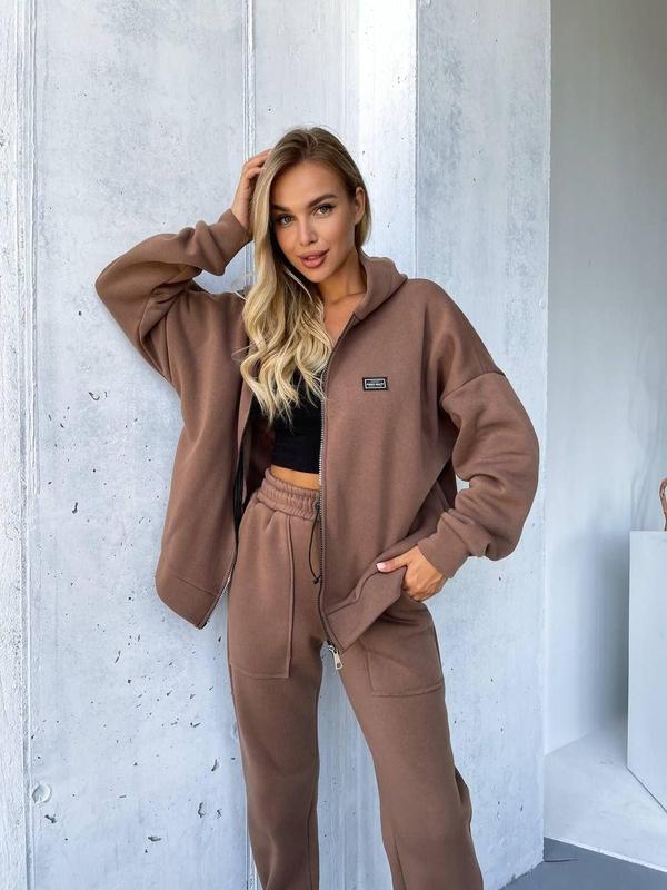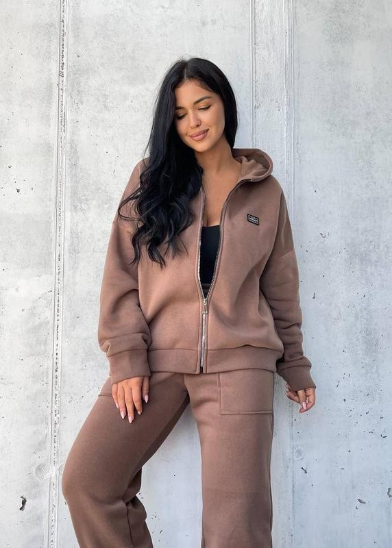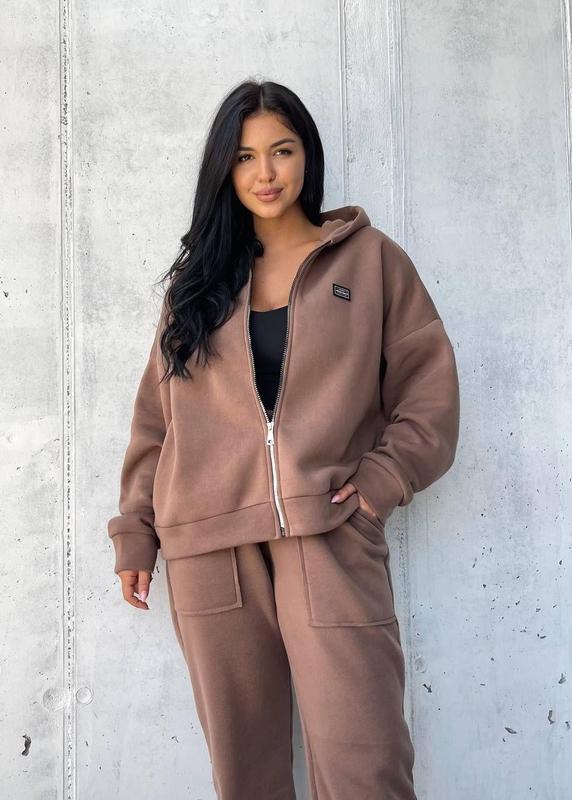 Качественный теплый женский спортивный костюм двойка ткань тринитка на флисе норма и большие размеры цвет кофе Отличный стильный комплект из флиса несет в себе безграничное удобство и элегантность. Он включает в себя новейшие однотонные прямые брюки, выгодно подчеркивающие вашу фигуру, а также теплую толстовку с плавной молнией, которая согревает вас в холодные дни. Изготовленный из высококачественного флиса с тремя нитями, этот комплект ставит комфорт во главу угла, независимо от погодных условий. Преимущество натуральных материалов заключается в их способности позволять коже дышать, что делает этот комплект идеальным для активного образа жизни. Этот женский комплект в стиле oversize доступен в широком диапазоне размеров, что позволяет всем женщинам найти свой идеальный вариант. Он является отличным спутником для занятий спортом, активного отдыха и фитнеса, обеспечивая вас необходимым комфортом и свободой движений. Приятные встречи с подругами или легкие тренировки в спортзале становятся еще приятнее благодаря этому комплекту. Его мягкая и комфортная фабрика делает его идеальным подарком на Новый год, Рождество или день рождения для ваших близких или самих себя.Кроме того, этот комплект идеально подходит для демисезона, весной и осенью, когда температура еще не совсем низкая. Добавляя этот комплект в свой гардероб, вы обогатите его разнообразием и всегда будете выглядеть лучшими во время прогулок, путешествий или пикников. Размеры: 42-44; 46-48; 50-52; 54-56 Цвета: розовый, зеленый, голубой, светлый беж, кофейный, черный, джинсовый, мятный.