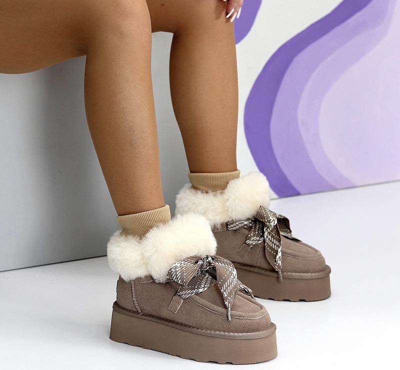 Угги на шнуровке Материал - НАТУР.ЗАМША Внутри - мех Сезон - Зима Высота от пятки - 10см Подошва - 4,5см/3,5см Размер в размер 36-23,5 37-24 38-24,5 39-25,5 40-26 41-26,5