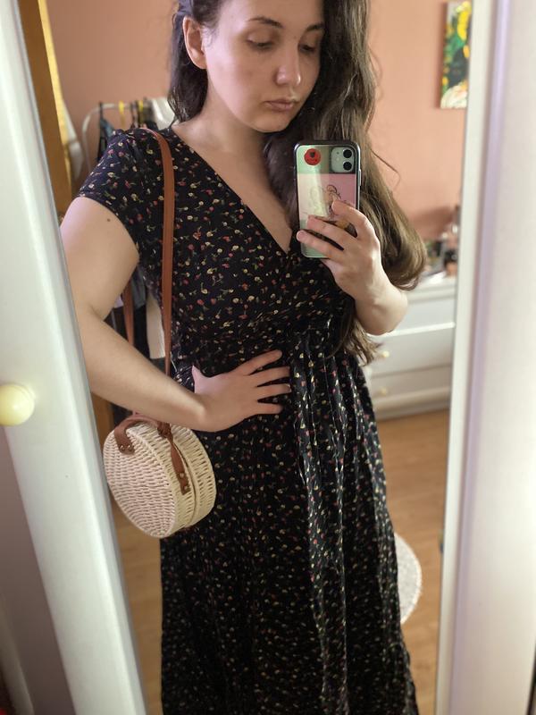 Чорна довга сукня на запах, з дрібним квітковим принтом. Є пояс та кишені з боків. - Розмір: S/M Виміри та довжину уточнюйте у лс - Склад. 100% бавовна Тканина дуже приємна на дотик і до тіла (Не буде кашлатитися після прання)