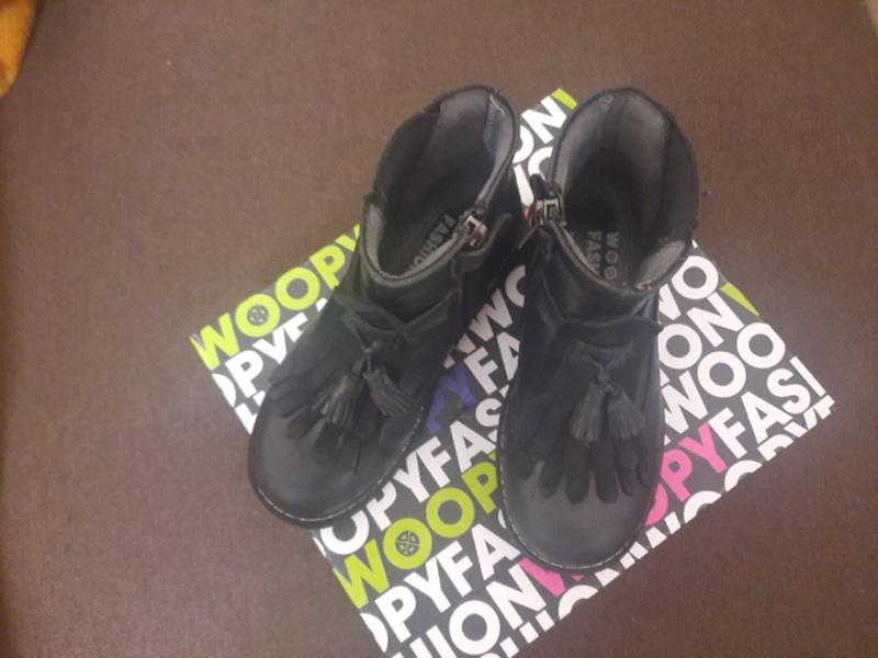 Стильні черевички для дівчинки фірми Woopy fashion. Перед та бік оздобленні замшевими вставками. Підошва додатково прошита сріблястою ниткою, яка підкреслює елегантність взуття. Мають боковий замочок, який вгорі фіксується шкіряним поясочком.