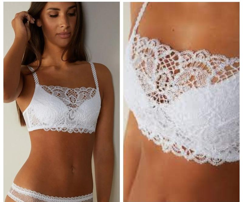 Вишуканий і дуже жіночний топ-бра з ніжного макраме від італійського бренда Intimissimi колекція Forever Macrame. Тонке макраме, елегантний дизайн і чуттєві лінії - ідеальне поєднання для вашого фатального образу. Модель з ущільненими чашечками з кісточками. Без push-up. Ідеально підходить для носіння моделей светрів, сорочок з вираженим вирізом або з прозорими речами. Розмір 75В, за рахунок чотирьох ступінчастій застібці може сісти і на 70В. В наявності з цієїж коллекції трусики бразильяно в розмірі S, можете придбати і скласти неймовірний комплект)💔 Абсолютно новий, з усіма бирками та етикетками. Ідеально на подарунок. ☝Повернення білизни та речей із шовку немає! 🍀Дивіться також інші Мої оголошення🍀 ❌Через кнопку купити замовлення не приймаю ❌ Спочатку почніть діалог!