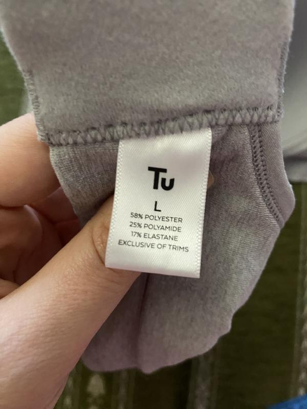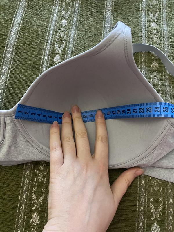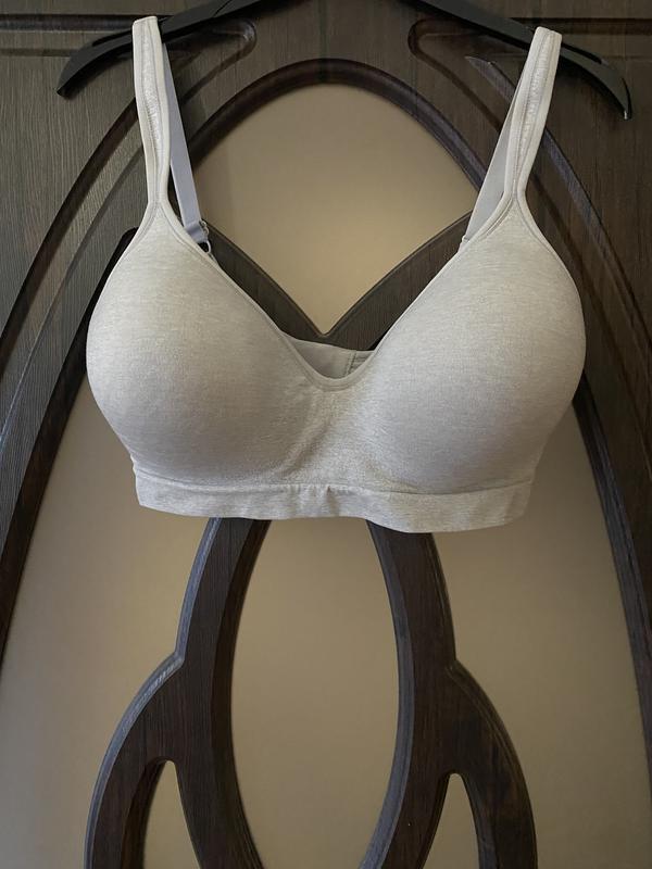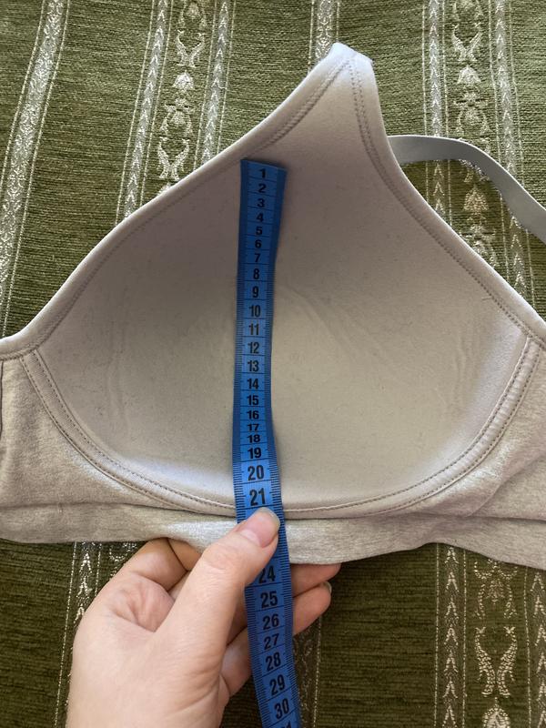 Шикарний, базовий, бюстгальтер, світло сірого кольору, без кісточок, дуже мякенький, в середині. Дуже красиво, виглядає на грудях. Зручний на кожен день. Брендовоі фірми: Tu. Заміри чашки бюстгальтера: ширина 24 см. довжина 21 см. Розмір вказаний: L/ підходе 85С/85D. Одягнений на 85С. Склад: 25% полімід, 17% еластину, 58% полістер. В обхваті, в спокійному, стані 76 см. тянеться до 110 см.