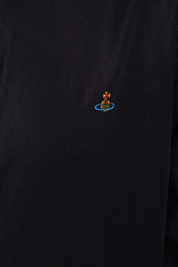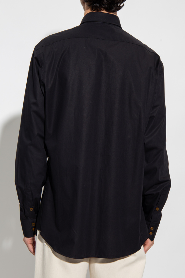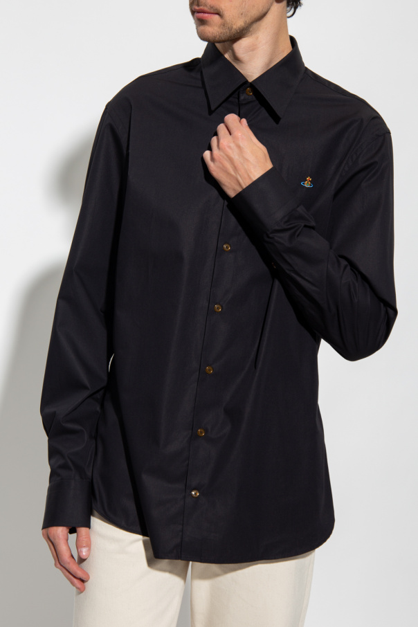 Black shirt from Vivienne Westwood. Crafted from organic cotton, this garment features a multicolored logo embroidery and long sleeves with buttoned cuffs.