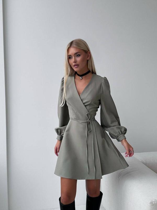 Женское короткое платье на запах с длинным рукавом серое красивое женское приталенное серое платье ✔️Новинка ✔️ Сукня🤍 ☑️Модель JW173 ☑️Тканина: Костюмка ☑️Цвета: Черный, серый ☑️Размеры: 42-44; 46-48 Базовое платье на все случаи жизни 🥰 Приталенный силуэт, регулируемая посадка за счет завязок, свободная юбка и воздушные рукава❤️