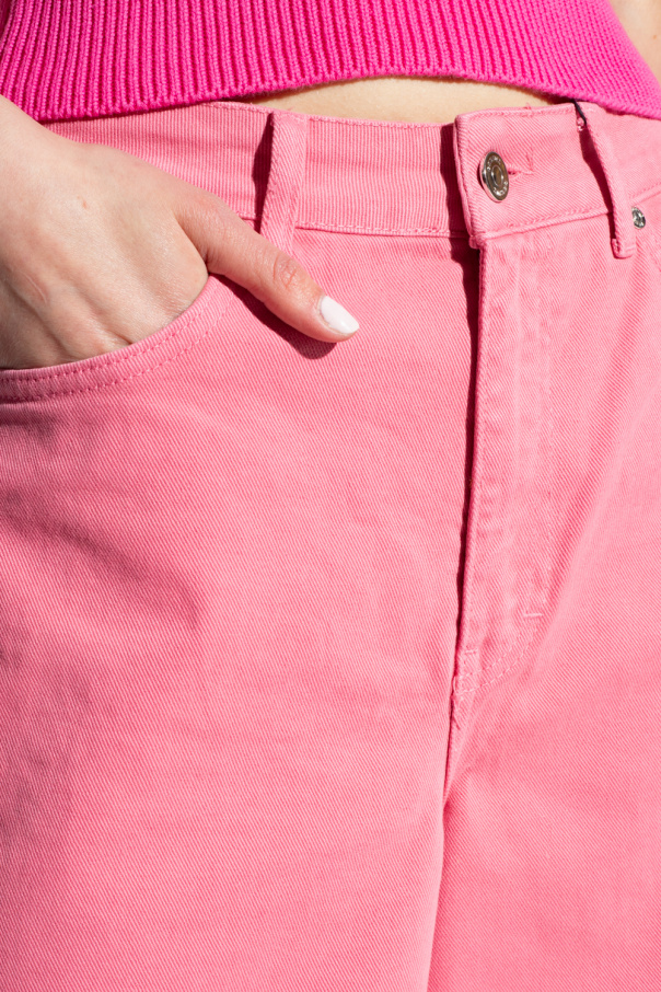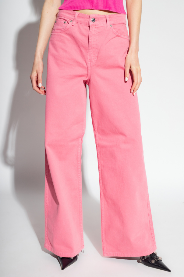 Pink ‘ElmaGZ’ jeans from Gestuz. Cut with a high-rise waist, this pair falls with wide legs and features a zip fly with a button, classic five pockets and an embroidered logo at the back.