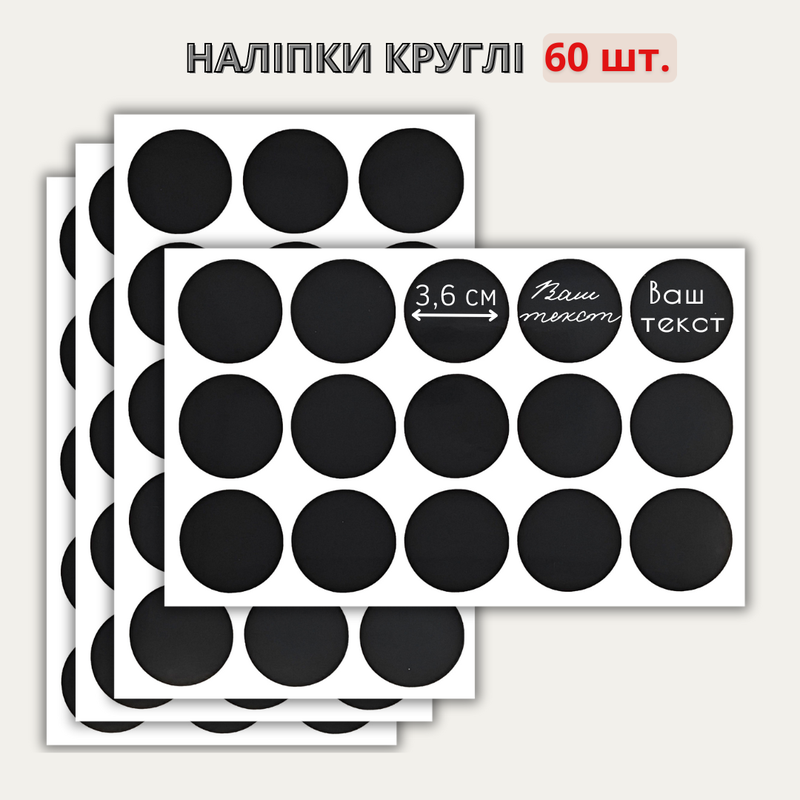 Наши наклейки хорошо приклеиваются и прочно держатся практически на любой поверхности. В комплекте идет белый маркер. Надписи выполнены белым маркером можно легко стереть влажной салфеткой или спиртом и написать снова. Наклейки для ручного заполнения гораздо удобнее и универсальнее, чем с надписями. На них сможете написать то, что Вам необходимо. Данные наклейки можно применять для баночек или бутылок на кухне, также можно использовать на коробках и контейнерах в гараже или кладовке, чтобы не забыть, что там хранится. Наклейки изготовлены из высококачественной пленки, они не боятся воды. Размер наклеек: диаметр: 3,6 см Цена: 30 шт. = 150 грн 60 шт. = 250 грн