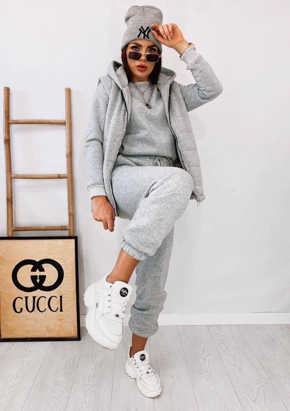 🔥🔥У НАЯВНОСТІ🔥🔥 ▪️Костюм трійка ▪️Мод 102*50 ▪️Тканина: трьохнить на флісі ▪️Жилетка силікон 150 ▪️Розміри: 42-44,46-48,50-52 ▪️Колір: беж, сірий, чорний ▪️Відмінної якості💫💫💫 ✅Фото реал