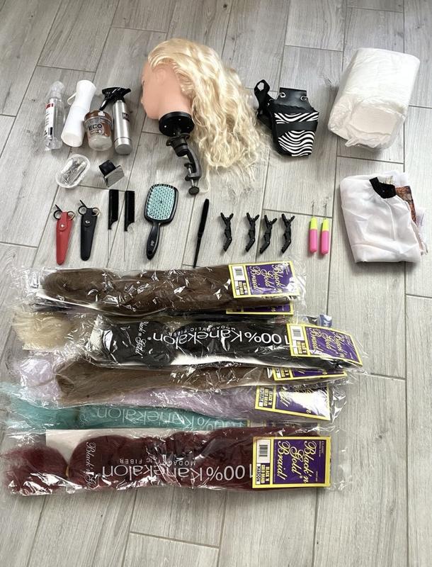 Все що потрібно на початку роботи по афронарощенню волосся! Все в гарному стані, майже нове. - крючки 0,5 2 шт - сумка - браслет - чохли для ножиць 2 шт - ножиці 2 шт - накидка - пульмелизатор 2 шт - зажими - еко гель - манекен - розчіски 4 шт - одноразові рушники - канекалон (Тіара #613 - 60 г, B&G #1-40 г, #10-65 г, #12-30 г, #4-45 г, Maroon-55 г, S.blue -45 г, Purple-40 г)