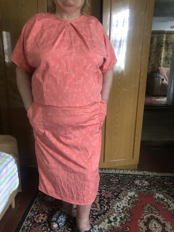 Плаття , нове зшите мною , модель моя мама 56 розміру , груди 120-125 см , талія на резинці так само як і груди , іде пряме Може бути на дуже високу жінку , чи середнього зросту пояс фіксується резинкою , є два кармани , підійде як на свято так і на будні , тканина з стрейчем приємне до тіла , подробиці запитуйте , ціна стоїть без торгу .
