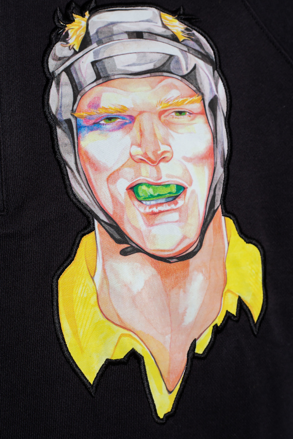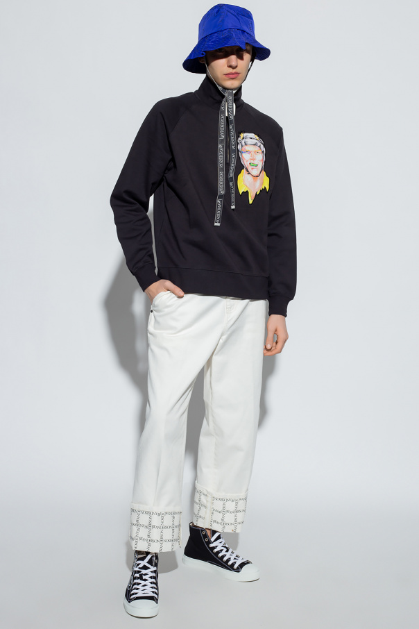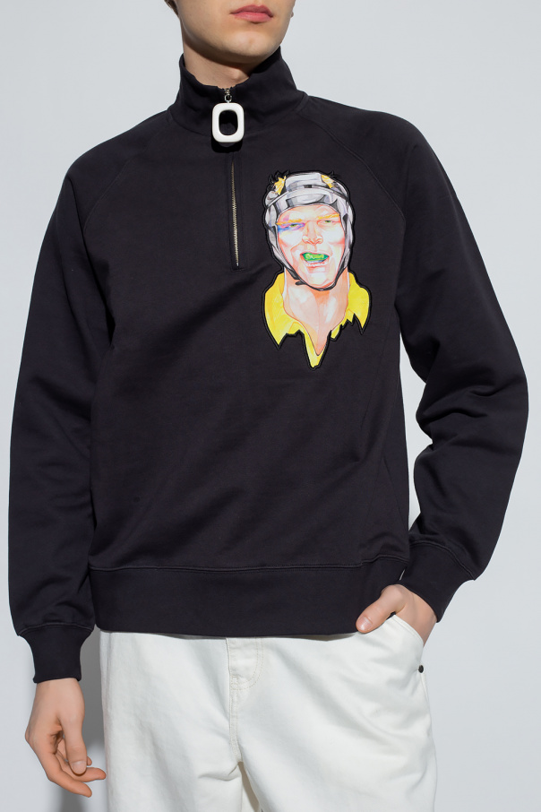Black sweatshirt with a standing collar from J.W. Anderson x Pol Anglada. Made of cotton, this style features a colourful graphic print, white logo embroidery and elasticized trims on the bottom hem and cuffs.