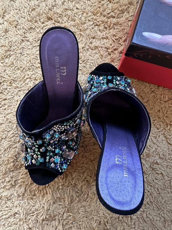Эксклюзивные сабо из натуральной замши с камушками. Состояние новых