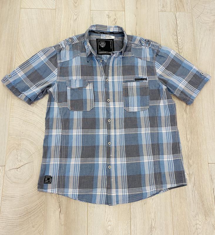рубашка DISSIDENT с коротким рукавом оригинал Cotton 100% Размер L Новая без бирок Замеры: - плечи - 48 - грудь (полуобхват, между подмышками) - 57 - длина по спине без учета воротника - 71