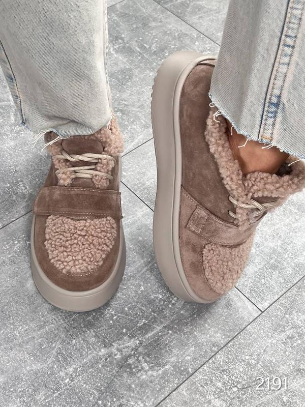 Код 2191 Черевички Teddy Цвет: визон Материал : Натуральная замша, мех Тедди Сезон : зима ( натуральная шерсть) Подошва : 3,5 см Размеры: 37-41 37 - 24,0 см 38 - 24.5 см 39 - 25,5 см 40 - 26 см 41-26,5 см