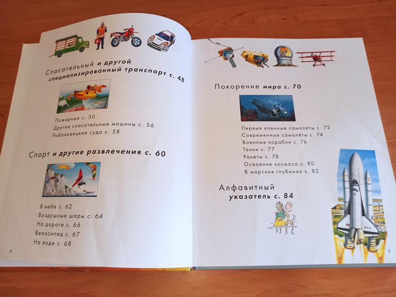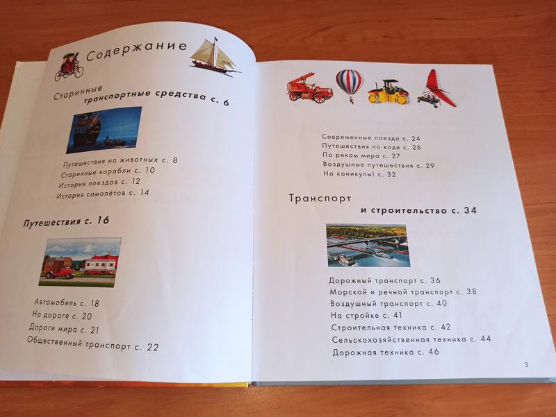 Транспорт. Большая энциклопедия книга для детей Отсутствует титульный лист (без информации и иллюстраций)Автор: Дельфин Гравье-Бадреддин Художник: Биар Филипп, Брутен Кристиан, Фур Ут, Сотэ Рауль, Галерон Анри, Гран Дональ, Де Уго ПьерКлеверРазмер: 253x208x10 мм Количество страниц: 96 стр. Обложка: Твердая В этой книжке вы найдете более 600 детальных реалистичных иллюстраций различного вида транспорта, а в специальной рубрике "Знаешь ли ты?" вы совместно с ребенком узнаете увлекательную и полезную информацию. На страницах энциклопедии, помимо изображений транспорта, размещены загадки и задачки на логику и внимательность, например, на одном из разворотов среди техники ребенку нужно найти собаку… В большой энциклопедии вы найдете информацию о следующих видах транспорта и историю их возникновения: - Дракары и кнорры викингов. - Телеги и лошади. - Дирижабли, аэростаты и цеппелины. - Пиратские галеоны и шлюпы. - Спасательный и другой специализированный транспорт. - Самолеты и поезда. - Строительная техника. - Космические корабли. - Подводные лодки. Особенности книги: Более 600 детальных иллюстраций Знакомит ребенка с основными понятиями из области транспорта и специальных профессий. Содержит исторические факты и загадки (с ответами). Высокое качество полиграфии, плотные страницы. Идеально подходит в качестве подарка для мальчика в возрасте от 3-х лет и старше.