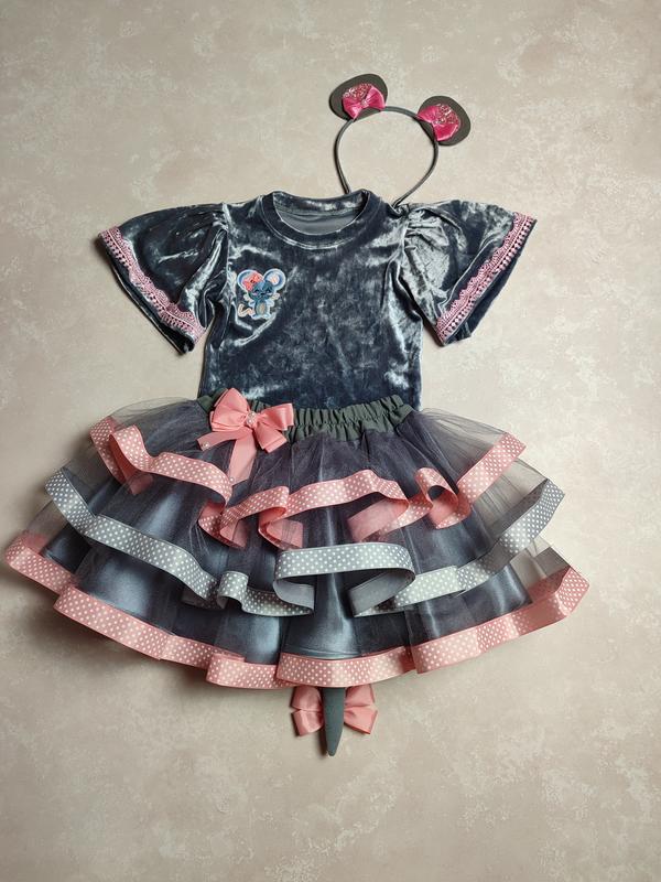 Авторский костюм для маленькой Мышки на 110-116 см Пышная юбка с хвостиком, окситовая кофточка и обруч -ушки