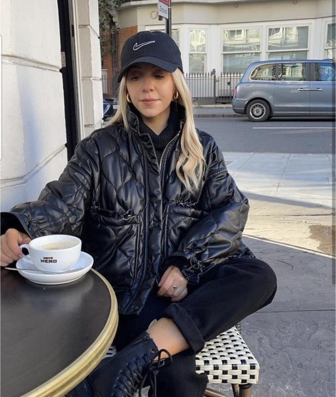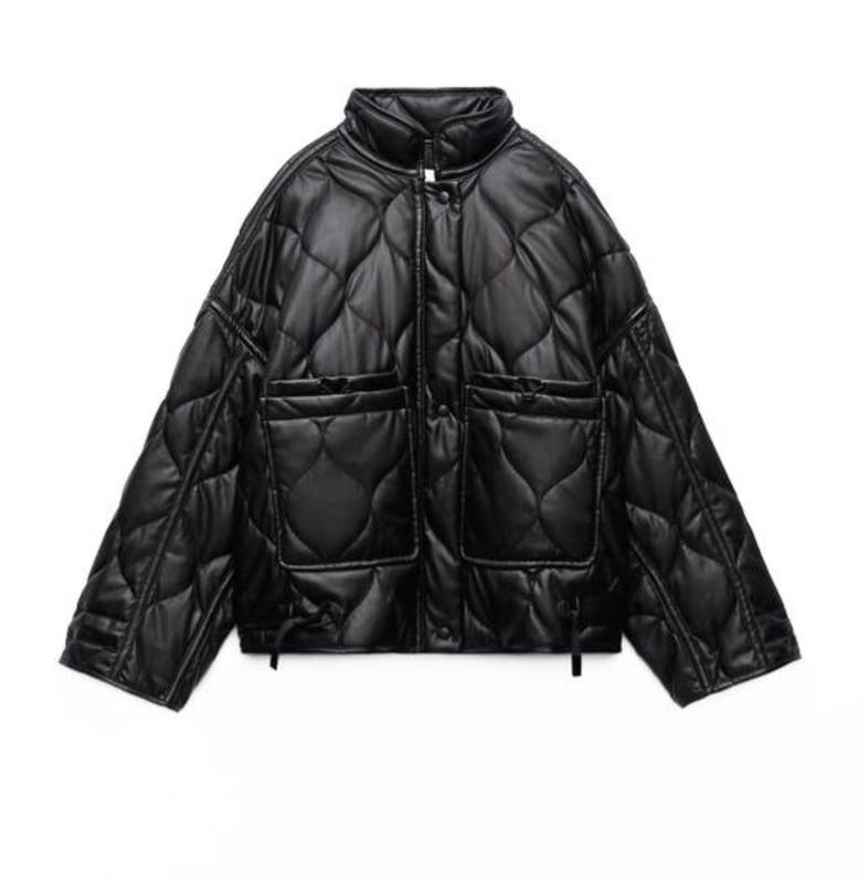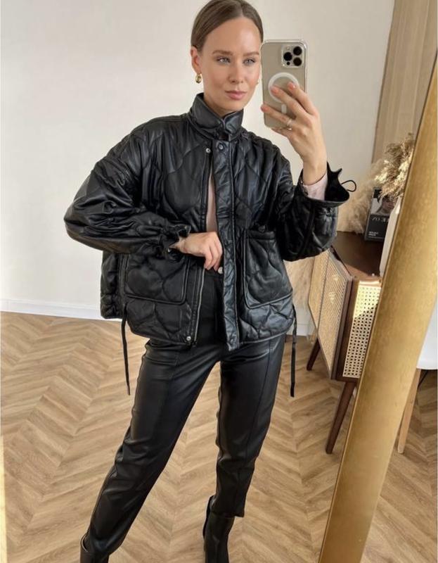 Демисезонная непромокаемая стеганая куртка из мягкой кожи PU (полиуретан) от Zara Купила в прошлом году, одета 2 раза. Продаю, потому что на мой рост короткие рукава(1,74) размер указан S, но т.к. модель оверсайз, подойдет как на большее, так и на меньше от подмышки до подмышки 64 линия плеча спущена, длина рукава от горловины 70 длина по центру спины 58 Утеплена шаром синтепону.