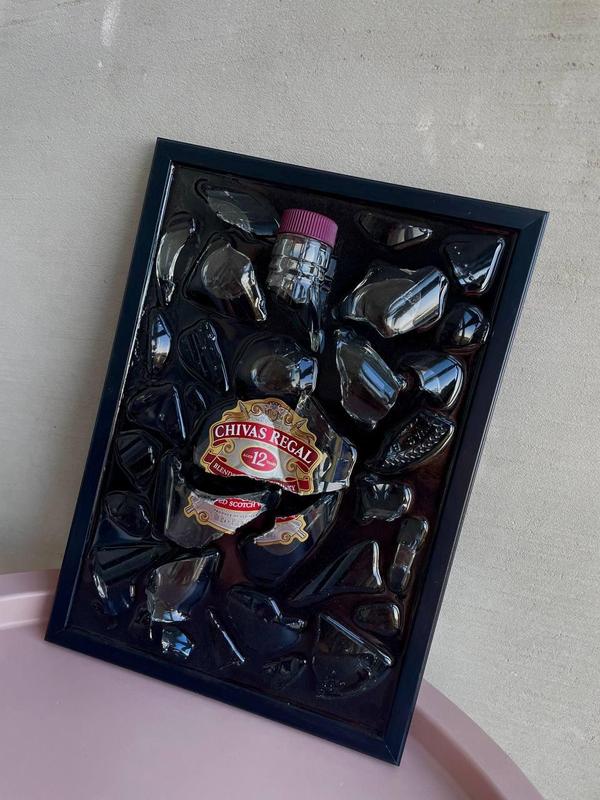 Представляем вашему вниманию картину ручной работы Одна из наших самых впечатляющих работ - картина с бутылкой Chivas. Она олицетворяет силу, статус и роскошь этого превосходного алкогольного напитка. Рельефные элементы и игра света, создающая глубину и насыщение цветов, делают эту картину идеальным акцентом для вашего дома, офиса или ресторана. Безусловно, каждый ценитель элитных напитков, оценит данную работу как символ исключительности и величия. Внутри находится разбитая бутылка виски "Chivas Regal" залитая эпоксидной смолой, Стекло держится очень плотно, не выпадет из картины никаким образом. Картина выглядит очень орининально и нет аналогов с данной бутылкой абсолютно нигде. Станет отличным подарком для ценителей алкоголя и просто украсит ваш интерьер. В Украине мы одни из первых и найти такое - большая редкость. Так же мы изготавливаем данные картины на заказ, сроки изготовления 2 дня.