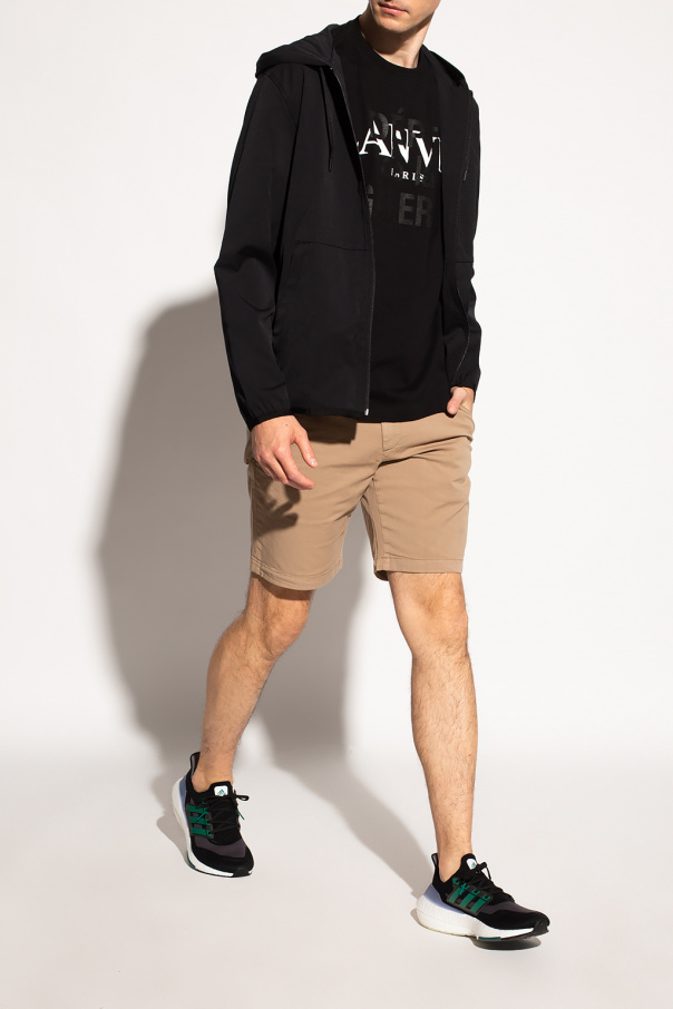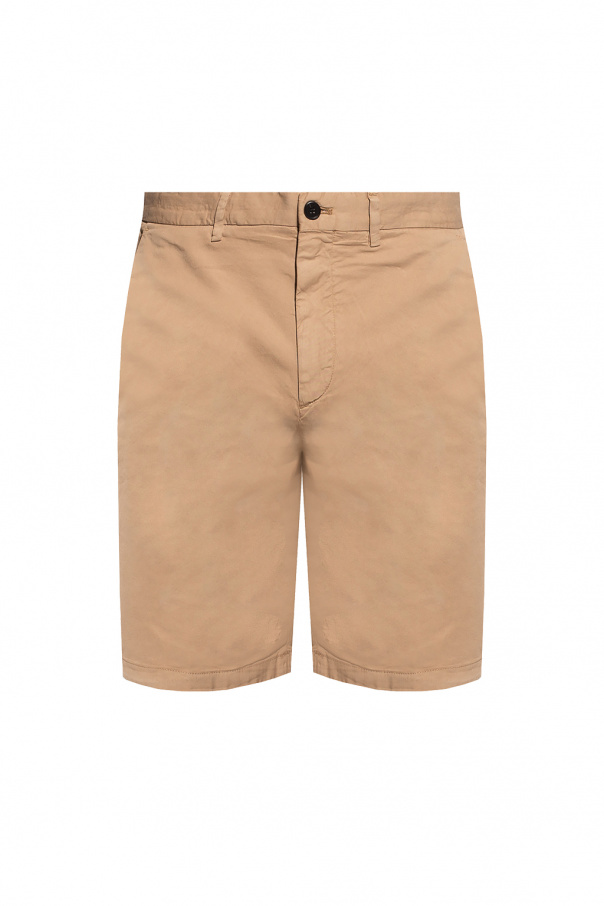 Beige shorts from Theory. Made of cotton, this pair features zip fly and button fastenings as well as two front and two back pockets.