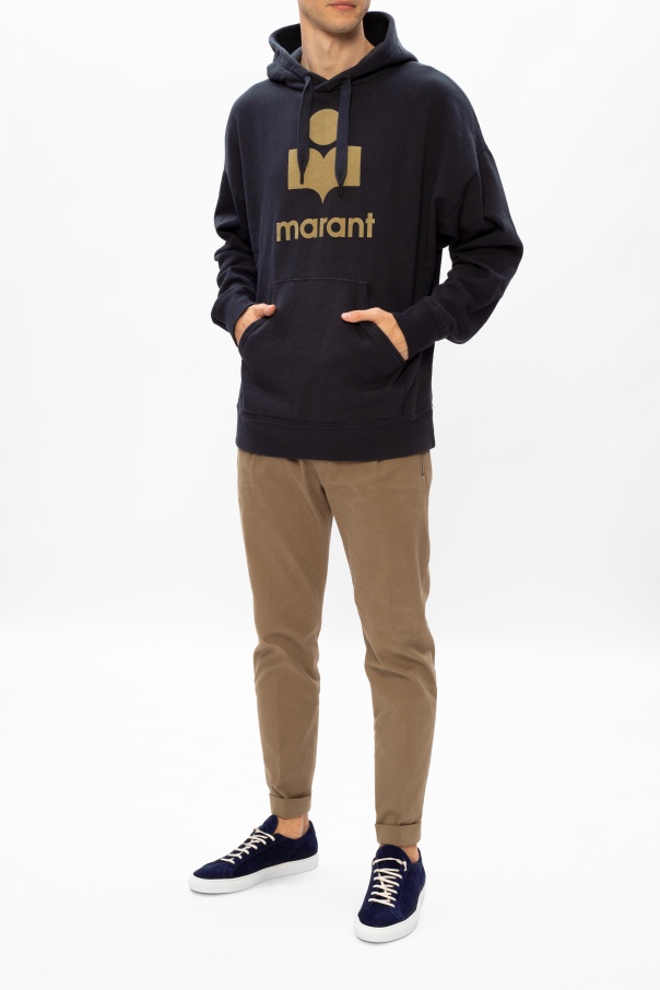 Navy blue ‘Achilles Low’ sneakers from Common Projects. Crafted from leather, this lace-up pair is set on a white rubber sole and showcases signature gold-tone graphic print.