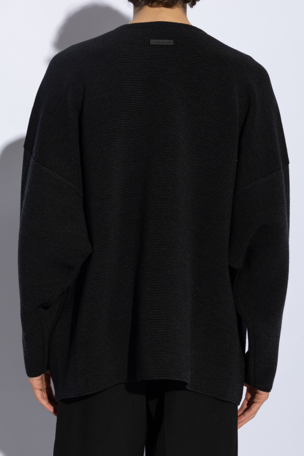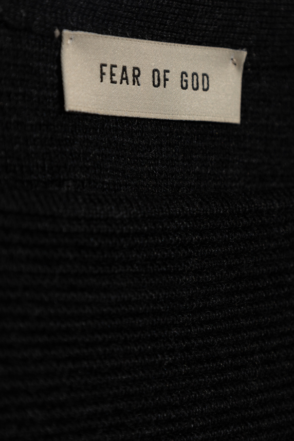Introducing the epitome of modern elegance: the Fear of God Black Woolen Sweater. Crafted from the finest 100% wool, this sweater embodies luxury and comfort intertwined. Its distinct, thickly ribbed texture and black hue exude an aura of sophistication, making it a staple piece for those who appreciate minimalist design with a contemporary twist. The sweater features a relaxed fit that promises ease of wear and superior comfort, complemented by long sleeves and a classic round neckline. The absence of closures or pockets underscores its streamlined silhouette, emphasizing the clean lines and pure form. Notably, the designer\'s mark is subtly placed both inside and on the external back of the neckline, serving as a testament to the exclusive Fear of God branding. Why Choose This Product? Premium Quality: Made with 100% wool, ensuring warmth and durability. Exclusive Design: The unique, irregular ribbed texture and minimalist aesthetic are signatures of the Fear of God brand. Versatile Style: Its sleek black color and contemporary design make it a versatile addition to any wardrobe. Comfort and Fit: Designed with a relaxed fit, it offers unparalleled comfort without sacrificing style.