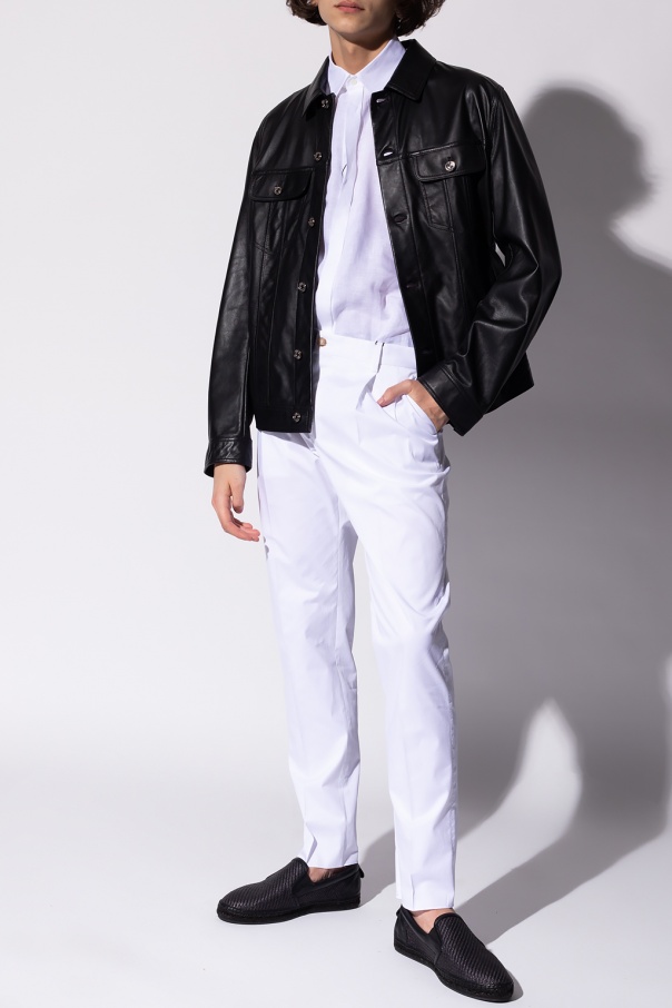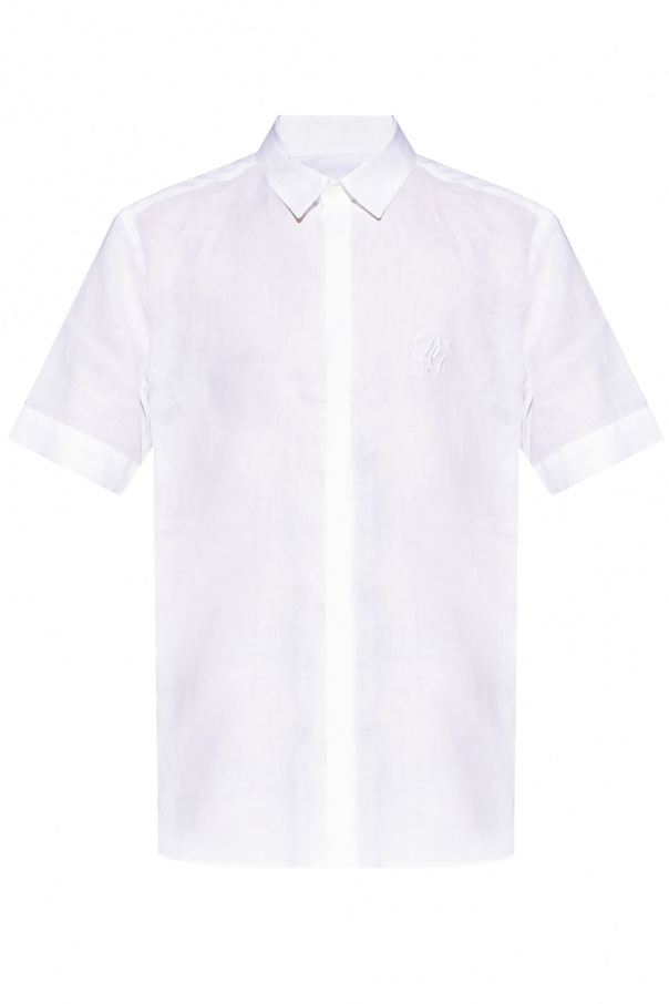 White shirt from Dolce & Gabbana. Crafted from linen, this garment features button fastenings and a logo embroidery.