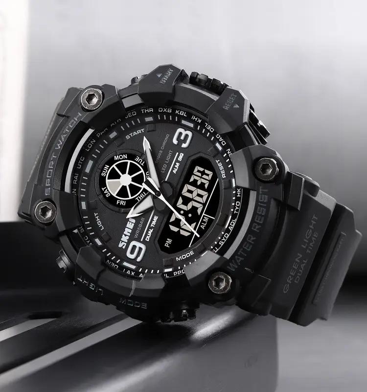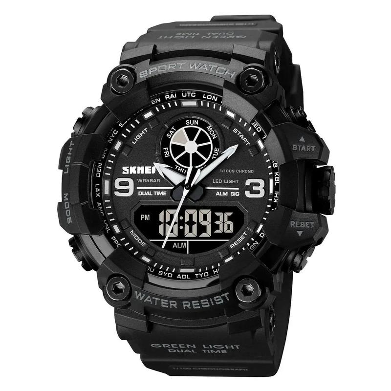 Мужские наручные спортивные часы Skmei 1818 Практичность, стильный дизайн и максимальная функциональность - вот что такое настоящие спортивные часы Skmei 1818! Оригинальный дисплей с яркой LED подсветкой позволит определить время даже в темное время суток, а водонепроницаемый корпус модели обеспечит максимальную надежность даже в экстремальной ситуации. Занятия спортом, экстремальный туризм ― Skmei созданы специально для тех, кто постоянно двигается вперед! Прочный корпус модели выполнен из стали и покрыт черным пластиком - узнаваемая спортивная «классика» обладает массой возможностей. Возможность отображения даты, а также наличие секундомера и будильника делают эти часы вашим универсальным помощником - независимо от времени года и условий работы! Спортивные часы Skmei 1818, с большим циферблатом, массивно смотрятся на руке, придают уверенности и мужественности. Идеально подойдут для тренировок, путешествий, а также благодаря своему дизайну, эффектно подчеркнут Ваш стиль. Корпус: Круглый корпус сделан из прочного пластика, который массивно выглядит и не прибавляет лишнего веса часам. Ремешок: Большой черный ремешок из каучука,. Оснащен двойной металлической застежкой из нержавеющей стали. Удобно фиксируется на запястье. Функции: Часы имеют ряд дополнительных функций, включая будильник, подсветку, секундомер, 12/24 часовой пояс, второе время, хронометр, подсветку. Подсветка: Яркая светодиодная подсветка является незаменимым помощником при использовании часов в темное время дня, при тусклом свете и плохом освещении. Водонепроницаемость: Часы выполнены из материала, хорошо защищающего от влаги. Класс водозащиты 5 ATM. Комплект поставки: - Часы - Инструкция (Английский язык) - Гарантийный талон - Без коробочки (противоударная упаковка) Цвета в наличии: Черный, Камуфляж, Красный, Синий наличие цвета уточняйте пожалуйста у менеджера-консультанта
