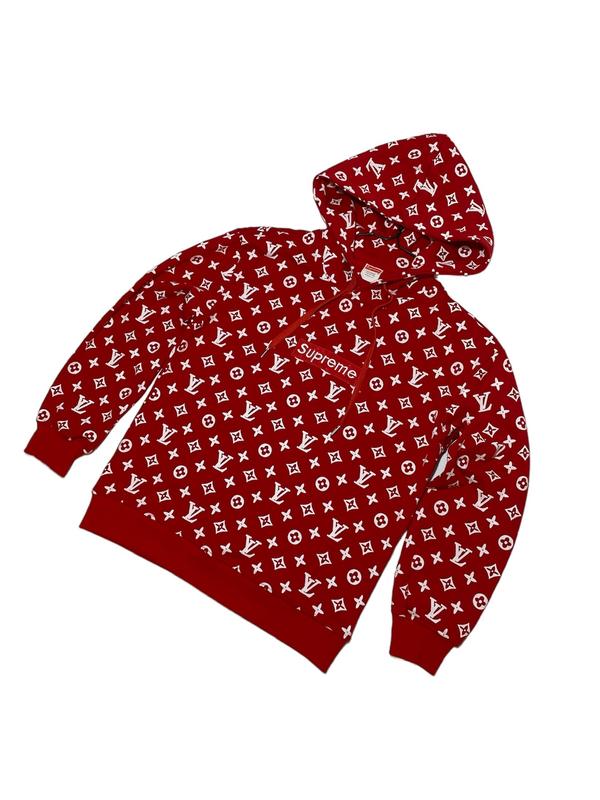 Supreme x Louis Vuitton Monogram Hoodie Стан наближений до нового. Качественная и эффектная вещь. Монограммный логотип и крупный вышитый по середине. Круто смотрится на теле, позволяет выделяться. Рекомендую! Размер S-M Ширина между подмышками 49.5 Длина от шва ворот до низа 62 Длина рукава от шва ворота 66.5 Сделаю любые дополнительные замеры и фото