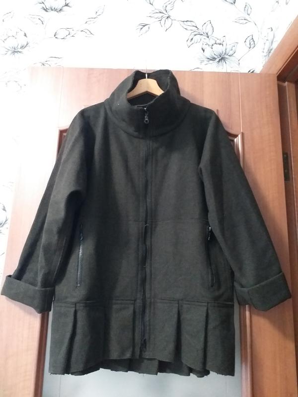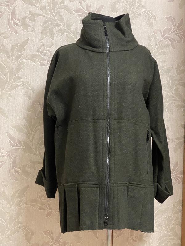 Жакет оверсайз швейцарського дизайнера , в ідеальному стані. Болотного кольору, без підкладки, добротний, із плотної шерсті. Довжина : перед 71 см; спинка 78 см довжина рукава реглан, від горловини 65 см з підворотом манжети Висота стійки коміра 12 см ПОГ під пахвами 62 см ПОТ 61 см Повернення не має. Доставка за рахунок покупця