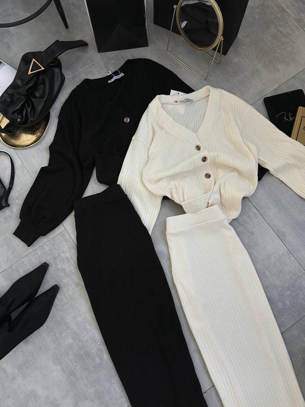 Женский костюм ♥️ Модель 751 Кардиган и юбка 🥥Размерный ряд S,M,L,XL 🥥Ткань двусторонняя Ангора в рубчик ( очень приятная ткань) 🥥Цвета светлый беж, черный, молоко и серый Кардиган застегивается пуговицами. Очень стильный костюм ♥️ Можно надевать под любую обувь 🏷️Цена 1200 грн