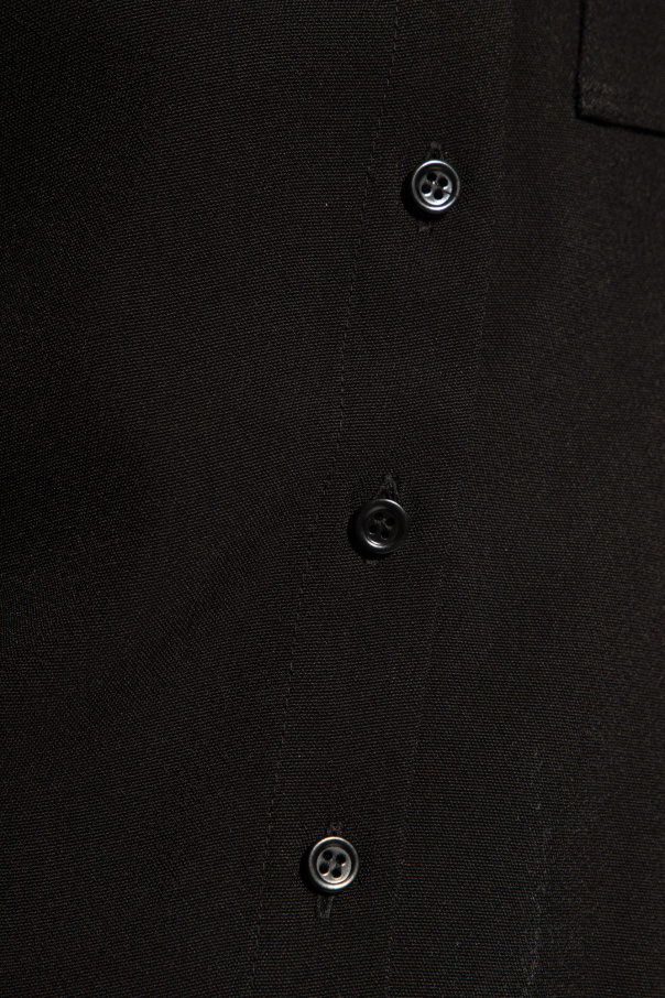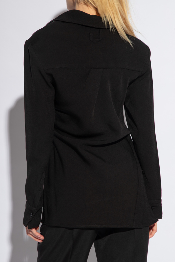 Black ‘Pablo’ shirt from Jacquemus. Cut with an asymmetrical silhouette, this style features a ‘J’ patch on the back, button fastenings, one chest pocket and long sleeves with button cuffs.