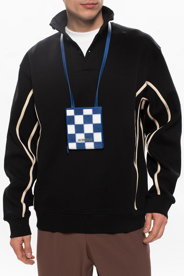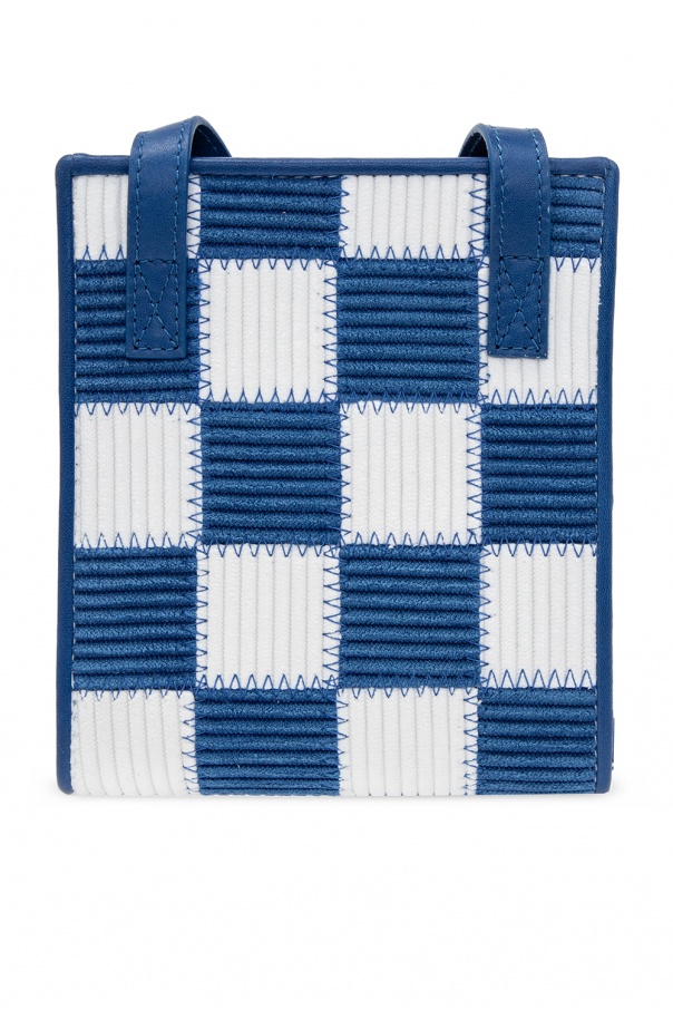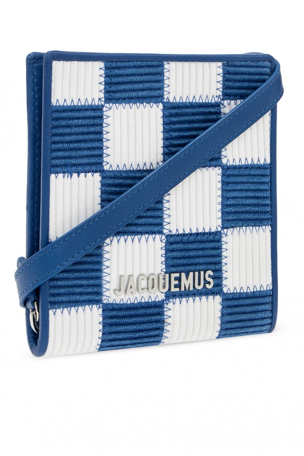 Blue and white shoulder bag from Jacquemus. Emblazoned with a logo plaque, this design fastens via a zip and features a shoulder strap, silver-tone metal hardware and interior with one compartment, two slip pockets and a card slot.
