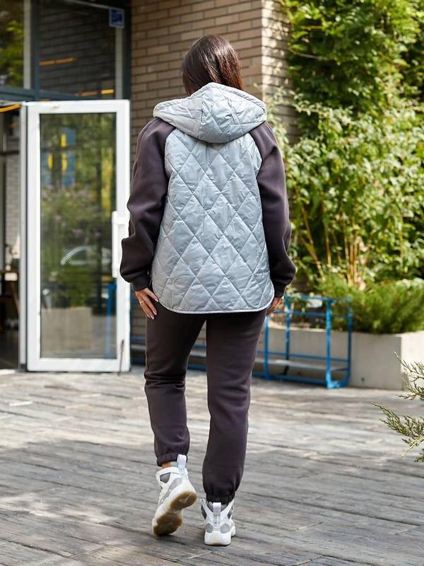 Теплый стеганый костюм-двойка. Куртка стеганая на подкладке с карманами и капюшоном. Брюки средней посадки с карманами, манжет на резинке. Ткань: тринитка на флисе + плащевка Лаке с холофайбером При выборе размера обязательно ориентируйтесь на замеры готового изделия. Замеры готового изделия: 46-48 ОГ 98, ОБ 98, длина кофты - 63 см, рукав - 60 см, длина брюк - 99 см 50-52 ОГ 106, ОБ 106, длина кофты - 64 см, рукав - 60 см, длина брюк - 100 см 54-56 ОГ 114, ОБ 114, длина кофты - 65 см, рукав - 61 см, длина брюк - 101 см 58-60 ОГ 122, ОБ 122, длина кофты - 66 см, рукав - 62 см, длина брюк - 102 см