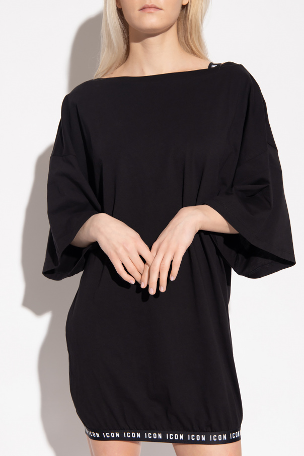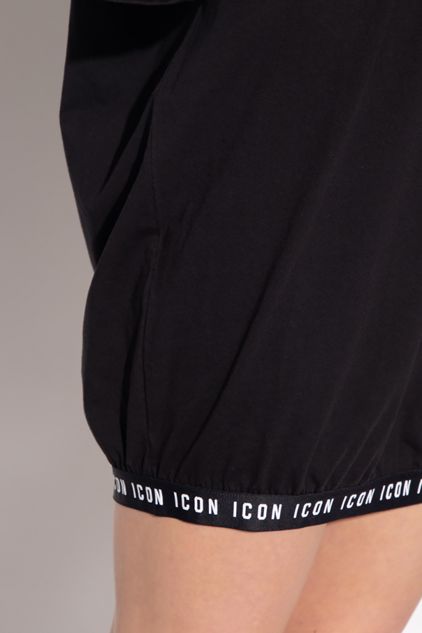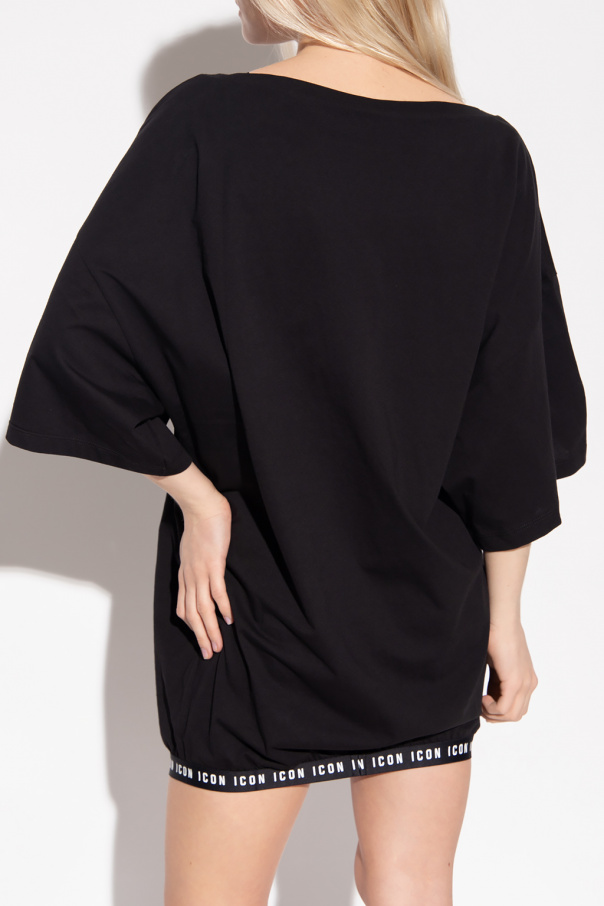 Black crewneck T-shirt from Dsquared2. Made of cotton with an oversize silhouette, this style features an elastic edge with a printed logo in white.