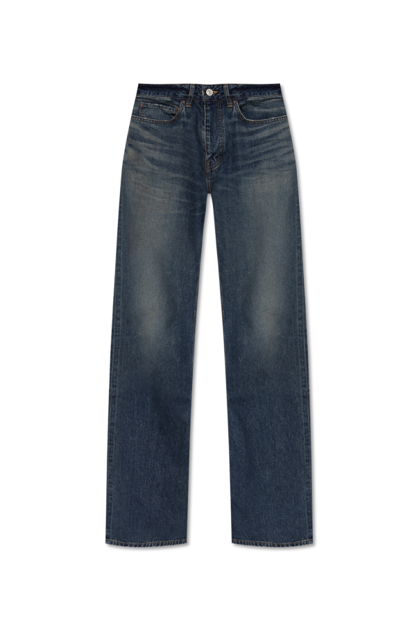 Introducing the Jeans with Logo from the exclusive fashion collection of Balenciaga, a brand synonymous with timeless elegance and visionary design. These jeans epitomize a classic and enduring style, perfect for those who appreciate sophistication in everyday attire. Crafted from robust, 100% cotton denim, these jeans feature a regular fit with subtly tapered legs, offering a blend of comfort and refinement. The rich, dark navy hue, enhanced by a vintage-inspired distressed finish, imparts an air of understated chic, with distinctive wear marks accentuating the thighs and knees. Adorned with standard pocket arrangements, complemented by metal rivets and contrasting stitching, these jeans exude a refined yet rugged charm. While the designer\'s logo may not be overtly displayed, its subtle presence is a testament to the brand\'s dedication to discreet luxury. Why Choose These Jeans? Timeless design with a classic regular fit Durable 100% cotton denim for lasting wear Elegant vintage-inspired distressed effect Discreet luxury from the esteemed house of Balenciaga