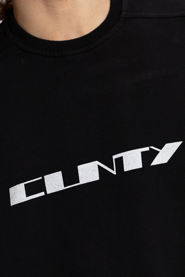 Black sleeveless crewneck sweatshirt from Rick Owens DRKSHDW. Made of cotton, this design features a white print, ribbed edges and the brand’s signature strap with a logo at the hem.