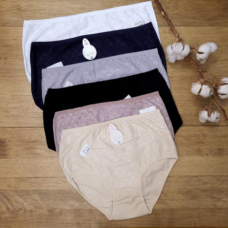 Кнопку "купити" не нажимайте (тільки після уточнення розміру). "Безпечною оплатою" не відправляємо. Гарні та зручні трусики з високою посадкою Anisse 50-62р. Туреччина. Є легка утяжка. Перед зі структурним блискучим малюнком "сердечка", "листочки" (малюнок може відрізнятися від фото). Матеріал: 95% бавовна, 5% еластан. Кольори: білий, беж, чорний, синій, сірий, мокко. ⚠️Уточнюйте наявність розміру, кольору і кількість. (9) 50-52р. заміри: ширина по талії 31-33см (тягнеться до 50-51см), ширина по стегнах 37-38см (тягнеться до 57-58см), висота від пояса до паха 31-32см, довжина по боку 16см (11) 54-56р. заміри: ширина по талії 33-35см (тягнеться до 56-59см), ширина по стегнах 40-43см (тягнеться до 61-64см), висота від пояса до паха 34см, довжина по боку 17см (13) 56-58р. заміри: ширина по талії 35-38см (тягнеться до 62-63см), ширина по стегнах 44-45см (тягнеться до 67-68см), висота від пояса до паха 36см, довжина по боку 18см (15) 60-62р. заміри: ширина по талії 38-41см (тягнеться до 66-68см), ширина по стегнах 49-50см (тягнеться до 73-75см), висота від пояса до паха 38-39см, довжина по боку 20см Продаються із загальною упаковки. Фірмових індивідуальних упаковок немає. Важливо! Нижня білизна відповідно до законодавства не підлягає обміну або поверненню! Будь ласка, робіть свій вибір обдумано, при наявності додаткових запитань - питайте. ✔Якщо ВЗЯЛИ РЕКВІЗИТИ на оплату, бронь тримаємо 24 години! Після закінчення цього часу неоплачене замовлення автоматично анулюється. ✔Відправлення здійснюється Новою поштою, укрпоштою по 100% оплаті на ФОП рахунок.