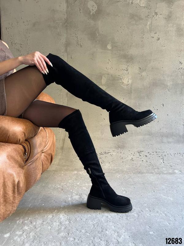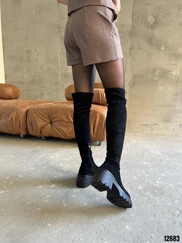 НОВИНКА❤️ Код 12683 Ботфорты ЕВРОЗИМА Эко-замша Цвет Черный Высота от подошвы 55см Подошва 8см-4см Внутри мех до щиколотки Верх флис Размер в размер 36-23,5см 37-24см 38-24,5см 39-25см 40-25,5см 36 голень 32,5-36,5см верх 40см 37 голень 33-37см верх 41см 38 голень 33,5-37,5см верх 42см 39 бритье 34,5-38,5см верх 43см 40 голень 35-39см верх 44см