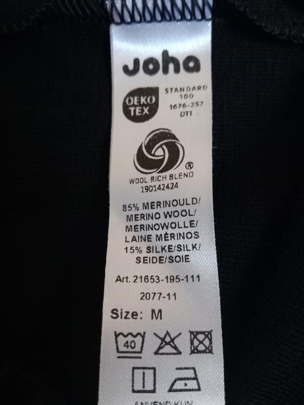 Новые качественные лосины фирмы joha, бренд Норвегии, изготовленные из шерсти мериноса и натурального шелка. Шерсть на ощупь мягкая и хорошо впитывает влагу. Шелк дает ощущение легкости и гладкости. Шерсть мериноса и шелк прекрасно регулируют температуру тела. Мериносовая шерсть очень приятна на ощупь, мягкая, не вызывает зуда и при этом обладает всеми достоинствами шерсти. Шёлк приятный и теплый, когда холодно, и охлаждает, когда тепло. Шерсть мериноса обладает высокой гигроскопичностью, она поглощает до 40% воды от собственного веса. Для сравнения, хлопок может поглощать только около 8%. Шелк ощущается мягким и комфортным на коже. Добавление шелка делает лосины немного легче при носке. Состав - 85% шерсть мериноса и 15% натуральный шелк. Размер указан М. Новые, без бумажных бирок. Есть производственный нюанс - разная длина штанин, в носке не ощущается, в цене учтено.