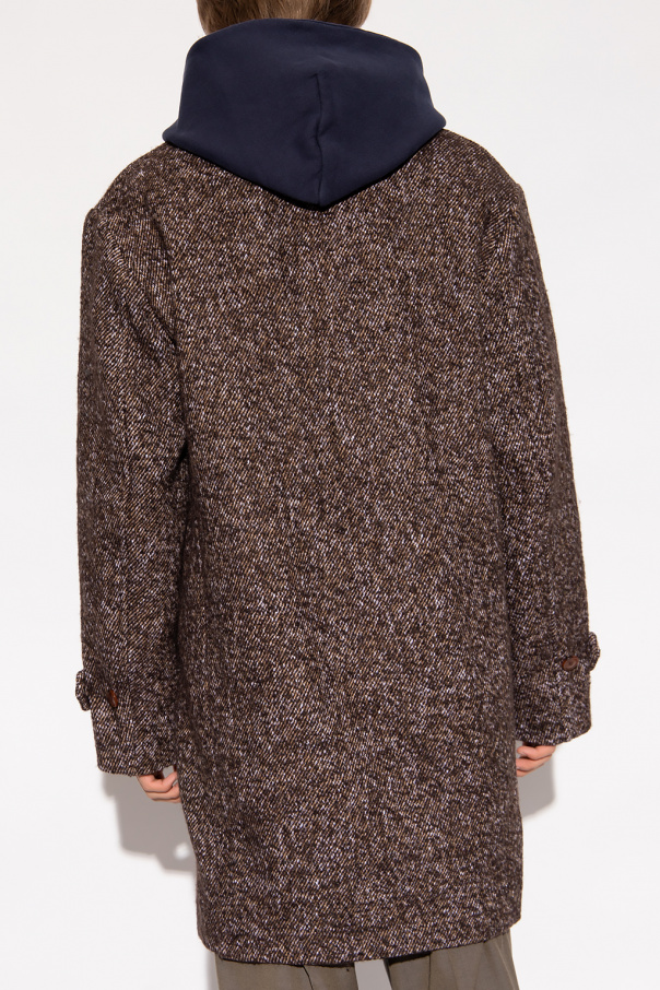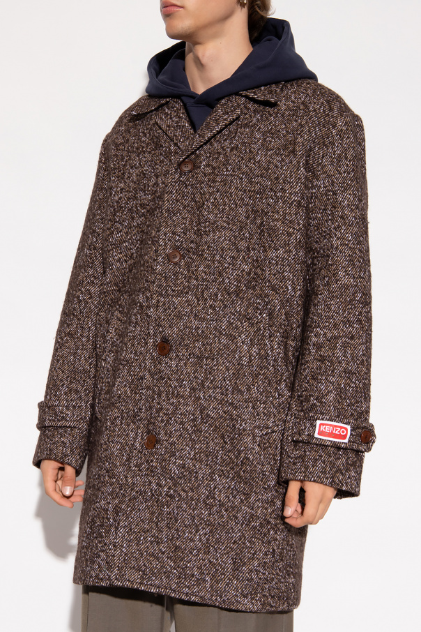 Brown coat from Kenzo. Made of a cotton, wool and alpaca blend, this garment features button fastenings, two front pockets, double rear vent and long sleeves with buttoned straps and logo patch in red and white.