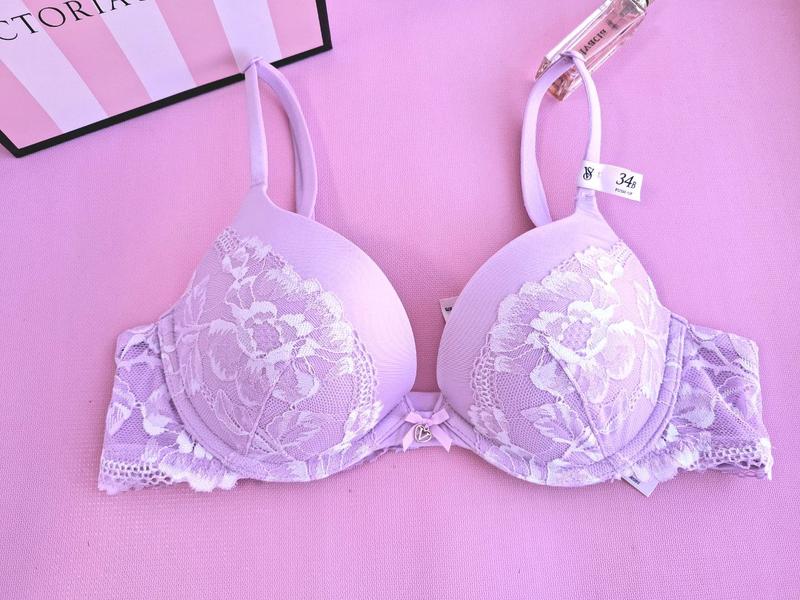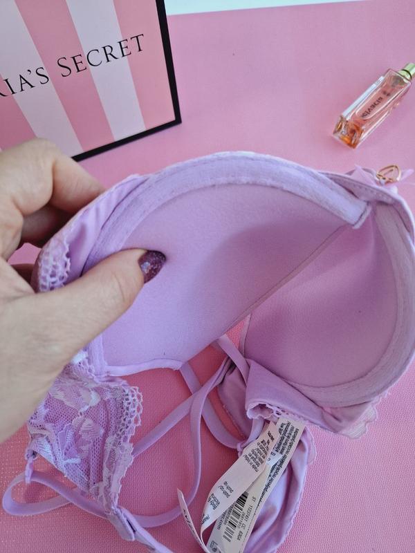 34B / 75B victoria secret Ліфт і підкладка Набивка пуш-ап Новий виріз Infinity Edge На кісточках Ремені та гачки Повністю регульовані лямки Ззаду застібки на гачок і вушко Деталі та тканина Надм'які боки з подвійною підкладкою для максимально гладкої форми