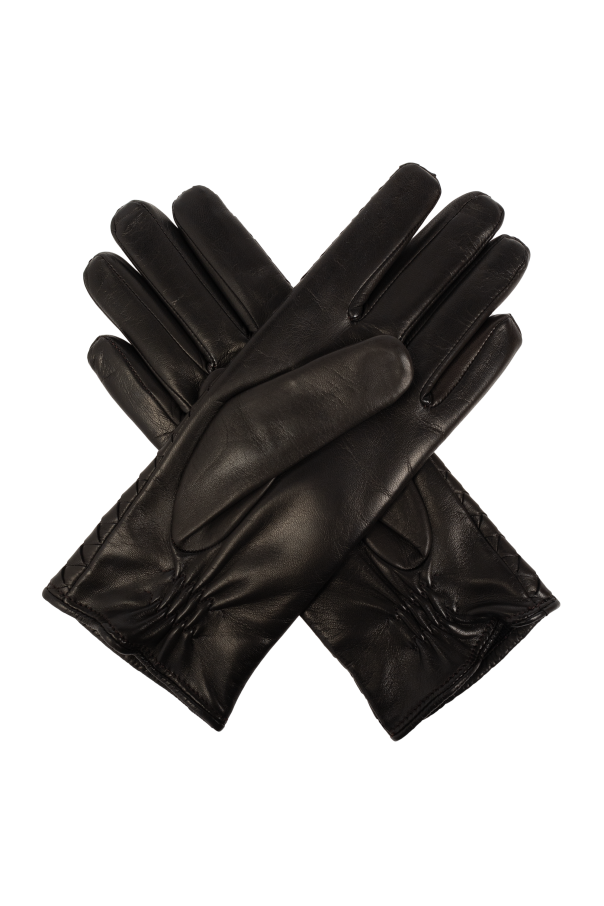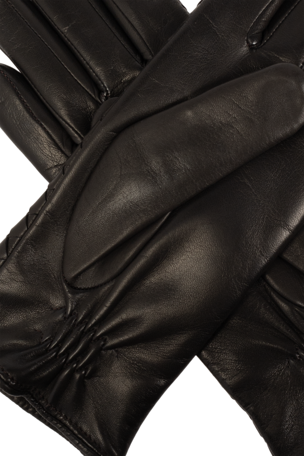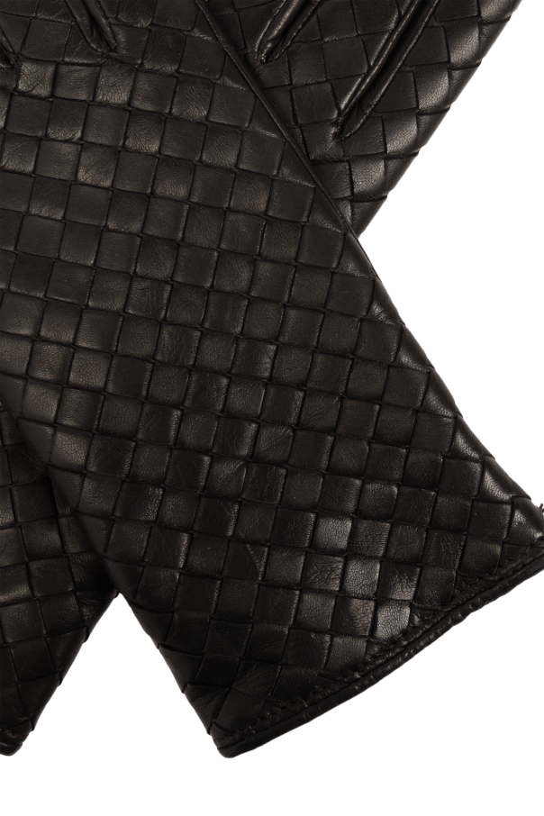 Introducing a masterpiece of craftsmanship and elegance, our Bottega Veneta Leather Gloves. Fashioned from the finest materials, these gloves boast an outer layer of 100% supple lamb leather, paired with an inner lining of 100% soft cashmere, ensuring both luxury and warmth. Available in a deep, rich brown, these gloves are a testament to timeless style and quality. The distinctive feature of this collection is its dual-structure design, with one variant showcasing a mesmerizing woven pattern that exudes an aura of sophistication and a unique character, suggesting handcrafted excellence or a special production technique. This pattern, resembling a matte grid, adds a layer of texture and depth to the gloves, making them not just a garment, but a piece of art. The absence of visible seams further speaks to the meticulous attention to detail and high-quality craftsmanship. Another variant presents a smooth, seamless leather finish, accentuated with elasticated gathers at the cuffs for a snug fit around the wrist, blending elegance with practicality. Both designs feature extended cuffs, highlighting their distinctive and fashionable silhouette. Why Choose These Gloves? Exquisite Materials: 100% lamb leather and 100% cashmere lining for unparalleled quality and comfort. Unique Design: Choose between a stunning woven pattern and a sleek, smooth finish. Elegant Silhouette: Extended cuffs and a seamless design create a sophisticated profile. Versatile Style: Perfect for both casual and formal occasions, enhancing any outfit with a touch of elegance. Discreet Luxury: The absence of overt branding allows the quality and design to shine, embodying the essence of minimalist luxury.