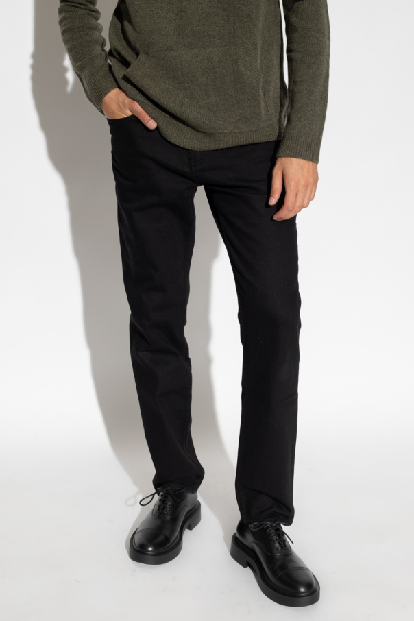 Black ‘Steeve’ jeans from Zadig & Voltaire. Crafted in part from organic cotton with a straight fit, this pair features a zip fly with a button, classic five pockets, long legs and a logo-embossed patch at the back.