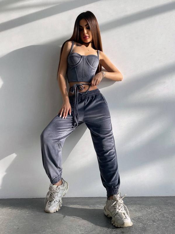 Велюровый комплект тройка: кофта + корсет с чашечками + джоггеры 6 цветов ▫️тканина: велюр ▫️размер: S и М
