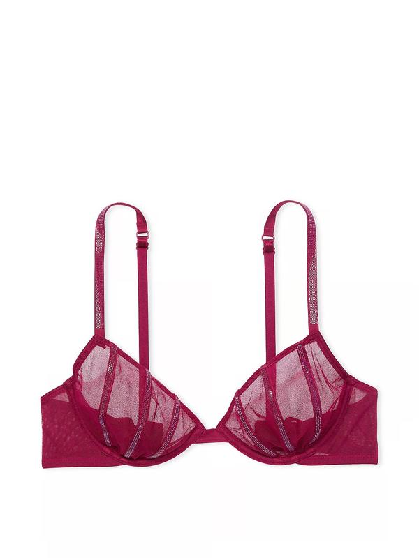 SHEER SHINE UNLINED LOW-CUT DEMI BRA - невероятный бюстик, украшенный несколькими рядами сияющих страз. Наденьте его на особенный вечер, или оставьте выглядеть из-под блузы. размер в наличии: ✅ 34С (75С) ✨ создан из мягкой сеточки; ✨ чашки бюсту и бретели украшены сияющими камушками; ✨ лиф без пуш-ап, на косточках; ✨ состав ткани: 100% полиамид; 💕 цена в объявлении указана по бюстику, трусики можно приобрести дополнительно (в наличии размер М, на объем бедер 98-103 см). новый. оригинал с ткаными бирками и бумажным ценником. 💌 более 1000 удовольственных клиентов, 250+ положительных отзывов; 🪽 8 лет работы с оригиналом, брендами Victoria’s Secret и PINK; 🩷 Советую подписаться на обновление продавца, чтобы не пропустить что-то особенное.