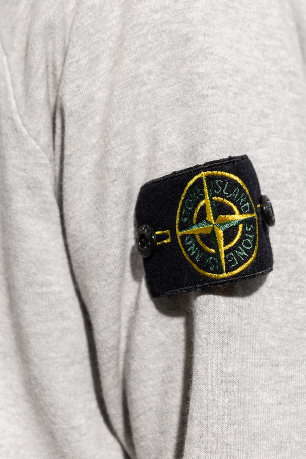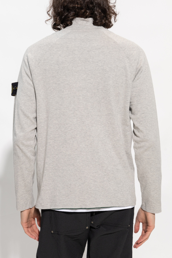 Reversible, grey sweatshirt with a mock neck from Stone Island. Made of cotton, this design features a zip fastening, sleeve patch with a logo. The reverse side is green.