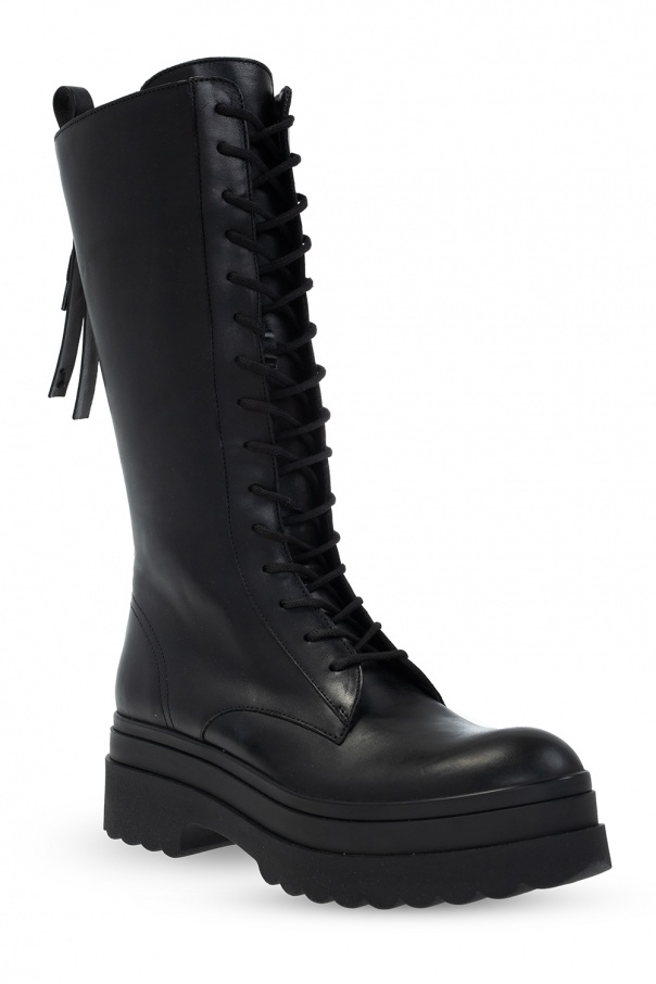 Black knee-high boots from Red Valentino. Crafted from leather, this pair sits on a black rubber sole and fastens via logo-embossed zip fastening on the side.
