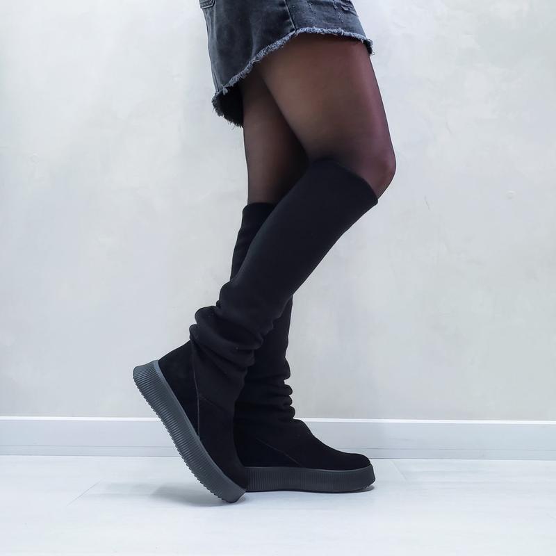 ☝️Матеріали верху виробу: натуральна замша, чулок - текстиль (набивна вовна в 2 шари). ☝️Висота виробу без підошви 55см. ☝️Підкладка: демі байка/ зима європейка (хутро по щиколотку набивна вовна). ☝️Кольори: сірий, чорний, бордо, пудра. ☝️Розмірний ряд: 35-41 в розмір. ☝️Підошва: поліуретан чорна та біла, легка, зносостійка, висота 3-4 см. Зима ❄️ зима + 70 грн