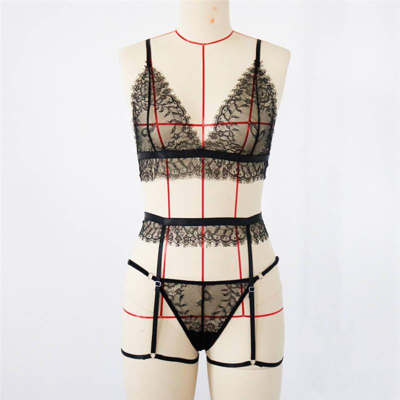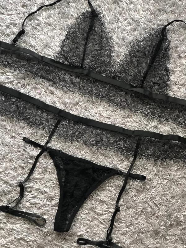 Красивое кружевное белье с поясом Цвет: чёрный Размеры : S,M,L