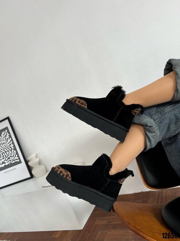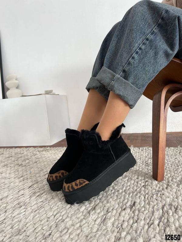 Код 12650 Угги Натуральная замша Цвет Черный+Лео Высота от подошвы 11см Подошва 5,5см-4,5см В середине натуральный мех