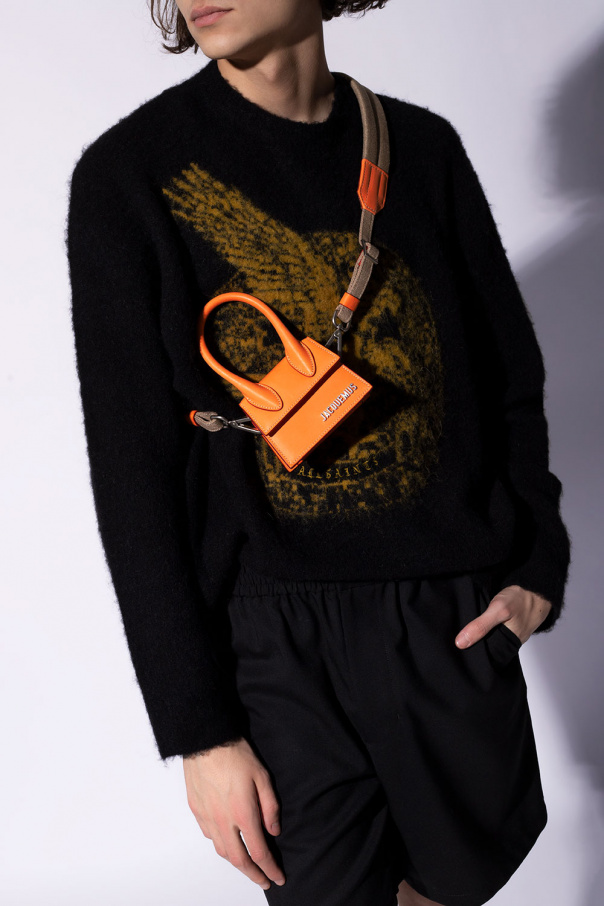 Orange \'Le Chiquito\' shoulder bag from Jacquemus. Crafted from leather, this design fastens via a snap and features exposed stitching details, a silver-tone metal logo plaque, a half-round handle, a detachable and adjustable shoulder strap in beige and orange, and one internal compartment.